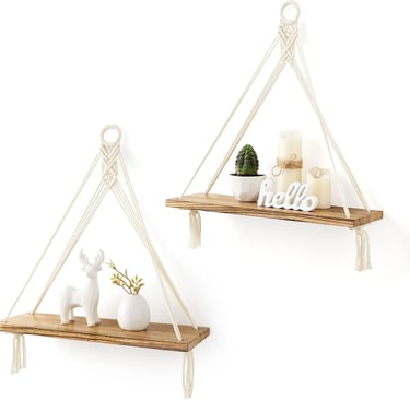 These macrame shelves pair rustic wood with handcrafted rope hangers, creating a boho-chic accent for any wall. They come as a set of two, but there’s also an option to get a set of three if you want to fill a larger wall or create a layered display