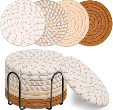3. Minimalist Cotton Woven Drink Coasters – Set of 8
