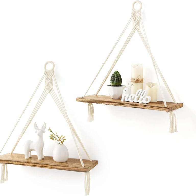4. Rustic Macrame Hanging Shelves – Set of 2